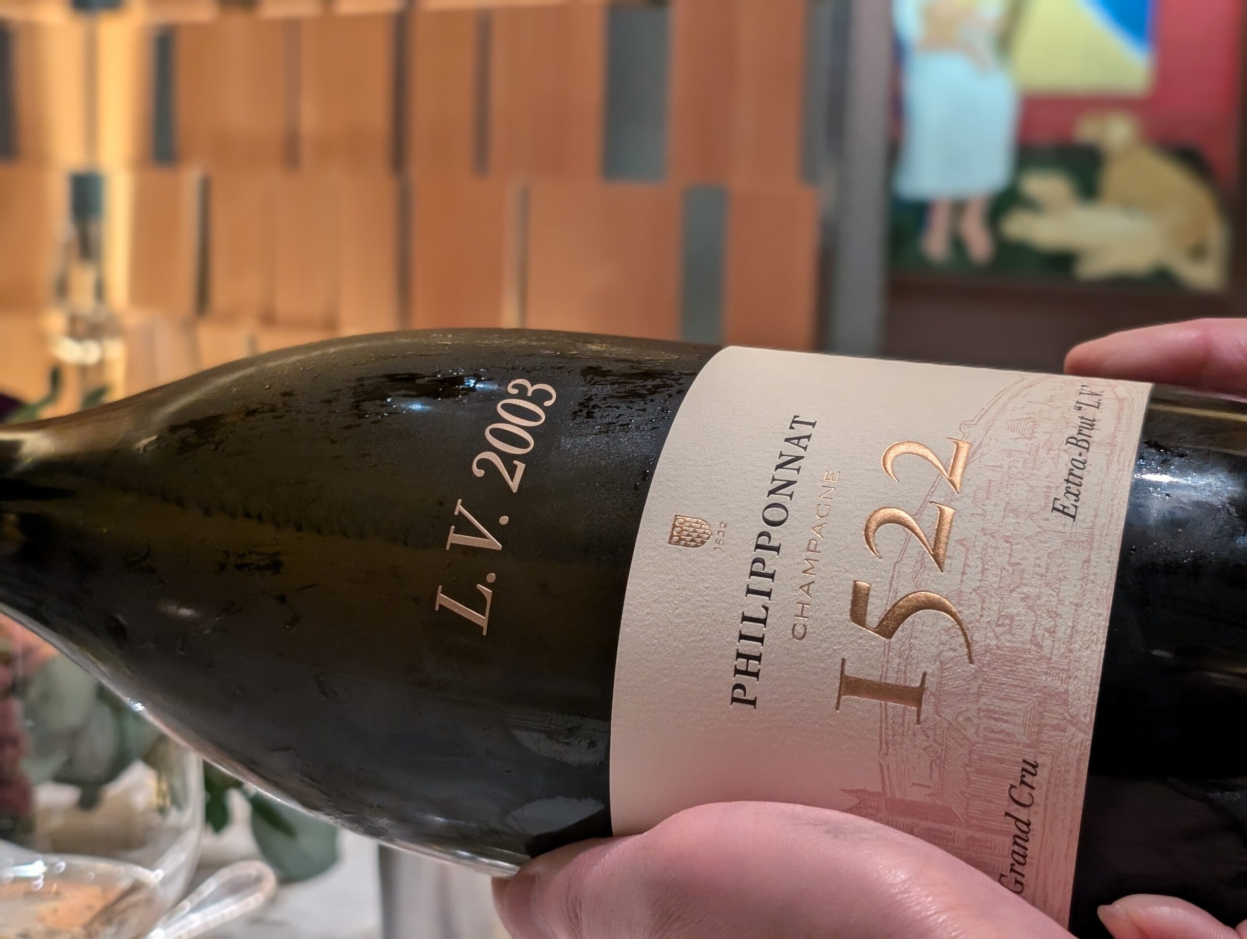 2003 Champagne Philipponnat, Cuvée 1522 Extra Brut LV, Champagne, France: 70% Pinot Noir and 30% Chardonnay from 100% Grand and 1er Crus. Disgorged in March 2023 with a 4.5 g/l rs dosage. Multifaceted complexity with a bouquet of cocoa nibs and grilled peaches with balsamic chocolate drizzle laced with a mineral intensity carried across the palate by ultra-fine bubbles creating a creamy mousse.